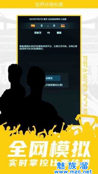《世界杯模拟器游戏手机版》是一款足球类休闲模拟游戏。玩家在《世界杯模拟器游戏手机版最新版》中可以选择队伍前往世界杯模拟现场比赛,看看自己支持的球队能否赢得决赛,并获得世界杯冠军的奖杯。玩家可以自由选择比赛的时间、球场和当天的天气情况。感兴趣的玩家不要错过!