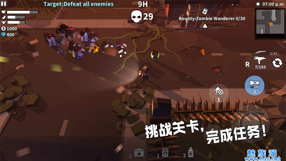 2、剧情模式:包含40+关卡,你可以扫清丧尸过关,你需要逃跑到目的地,你需要收集一些物品。各种小彩蛋等待你来发现