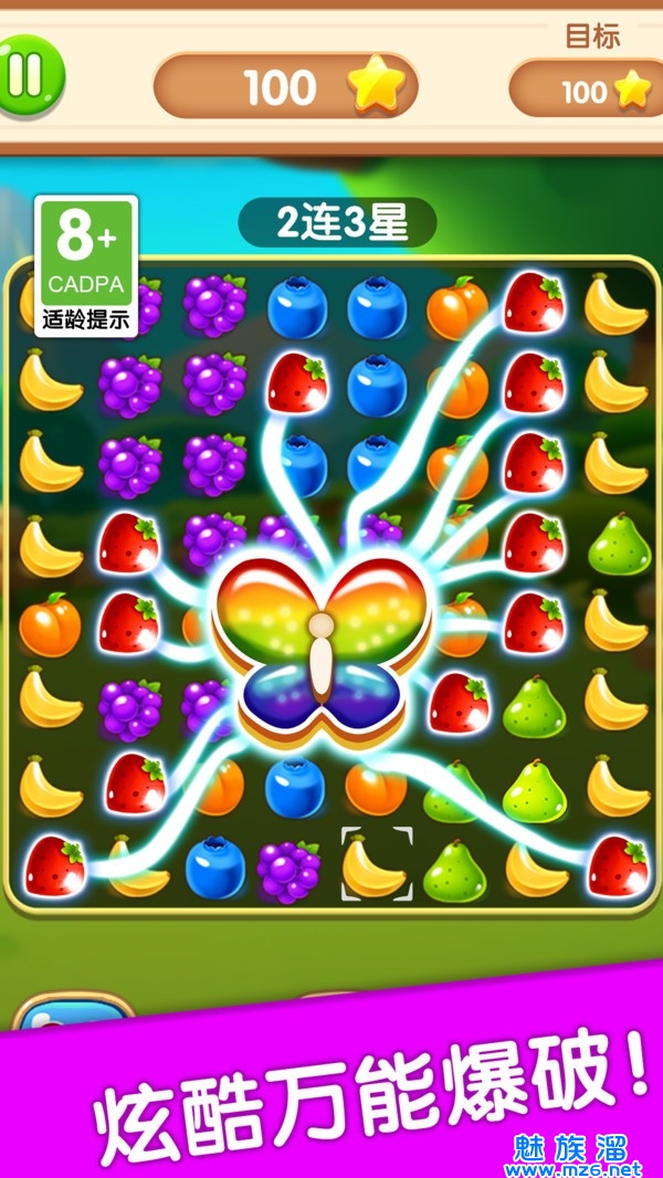 3、小提示:同时消除的水果越多,获得的分数越高.尽量拾取全部宝石星星方块吧,剩下宝石星星方块越少你获得的额外奖励将更多