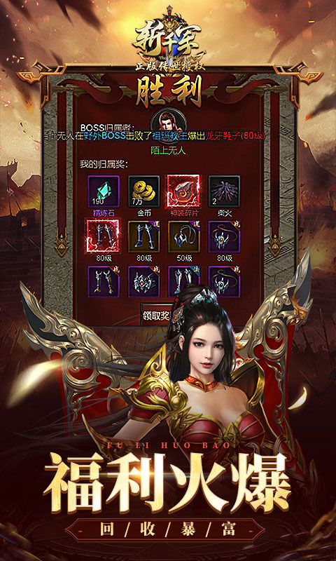 《斩千军手游》是一款复古传奇RPG手游,《斩千军手游正版》延续传奇经典界面,三职业玩法,打造一个原汁原味的传奇,不用花钱,装备全靠打,自动回收,自由交易,轻松赚取元宝,画面清晰,操作流畅,享受热血战场。