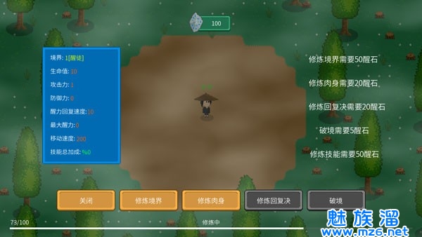 你将从1级修炼至100级,一路过关斩将并且击败敌人,
