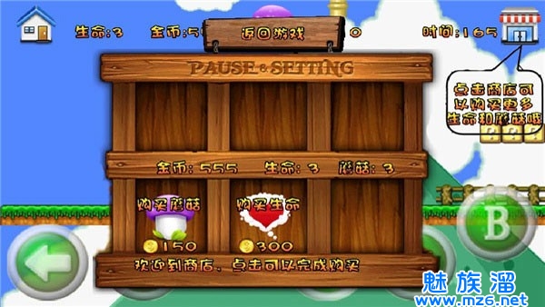 2、操作方法:左下角虚拟摇杆控制方向,右下角按钮分别控制发子弹和跳跃,持续按住发射子弹按钮可以加速跑!
