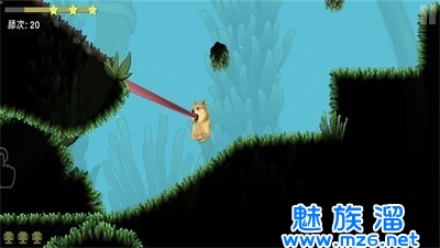 4.制舔狗舌头的方向,吸附特殊区域进行跳跃,躲避关卡中的陷阱,不断前进,完成关卡挑战。