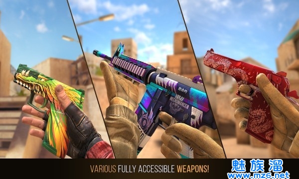 一款大型射击枪战游戏,多种竞技对战模式以及各种武器,其中有拆弹、团队死斗、军备竞赛、街机等玩法模式,你可以自由选择喜欢的模式和武器开始对峙,还可以邀请好友一起对抗,超多地图等你挑战,用实力说话,成为对峙传奇。利用你强大的头脑和你的对手进行周旋,将他们击杀来完成胜利,也可以化身成为超强的特种部队,完成你的任务击杀所有恐怖分子,这里将会成为你命中的宿命。游戏里面的武器十分丰富,提供中距离以及远距离的武器,拥有手枪、步枪、散弹枪等分类,玩家可以根据战场当中是实际情况来选择使用,还拥有手雷、烟雾弹等辅助性武器,不仅可以挡住敌人的视线,还能造成毁灭性的伤害。