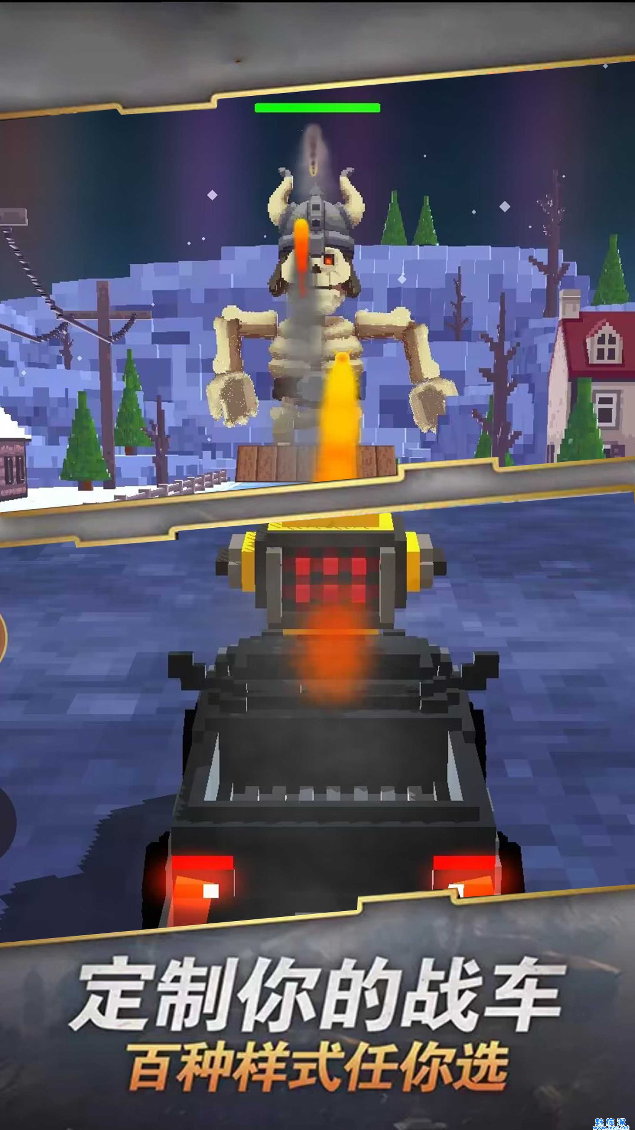 2、选择你的战车,自由升级,收集更多的道具,提升属性实力;