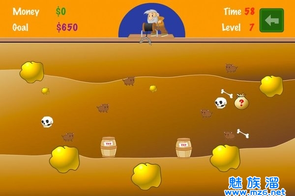 一款休闲益智游戏。游戏玩法简单,在每一关规定的时间内,在采矿机的钻头转动到适当的角度时,点击屏幕就可以,只要对准角度,采矿机会自动把黄金搬回来。每一关结束,还可以采购道具来帮助你采矿,是相当简单却很有游戏性的游戏。有经典怀旧的玩法,各种类型的游戏操作,可爱的图形,重新体验经典的游戏关卡推荐,有童真的乐趣。在关卡中坚持阅读的时间越长,越能享受其中,在这个游戏中,玩家将成为挖黄金的矿工。而且你要做的就是在规定的时间内挖到关卡规定的钱。该游戏十分考验大家的观察力和动手能力,有多种关卡,游戏难度会逐渐增加,给游戏带来了更多的可玩性和挑战性。总之,如果你想花时间或重温经典,相信这个游戏是个不错的选择!