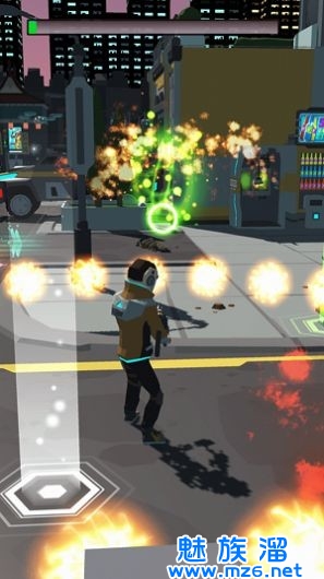 1、充满未来城市风的场景设计,打造了独特的游戏世界观。