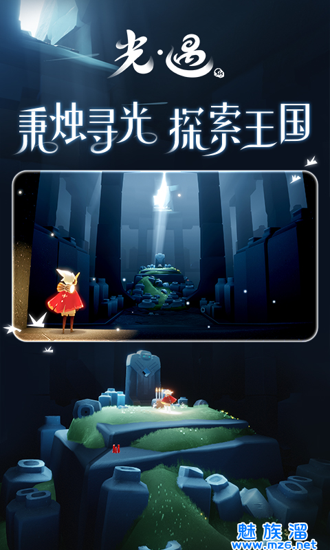 旅人从晨岛出发,开启天空王国的冒险之旅。途中无需指引与提示,旅人可以在场景中自由探索、遍历美景、寻找隐藏的彩蛋,并借助先祖的力量打开星之门,前往下一个地图。