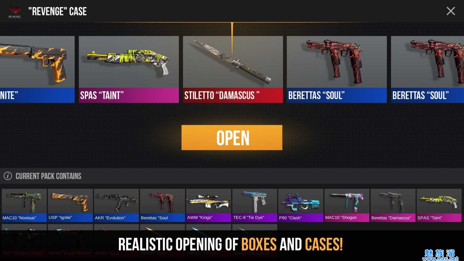 6、每一种枪都有着不同的磨损程度,还有崭新的,刺激的开箱带给你不一样的玩法。