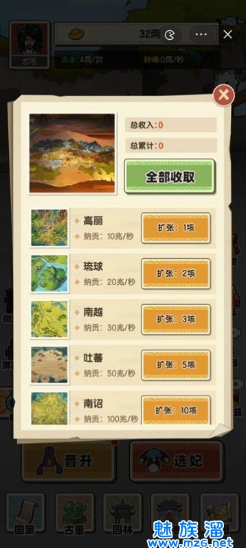3、玩家需要不断升级自己的能力和财富,并应对各种挑战和危机,最终成为一个成功的皇帝。