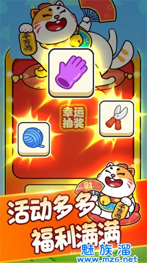 1、游戏中有各种不同的猫咪形象,包括可爱的小喵咪和招财猫等,卡通可爱;