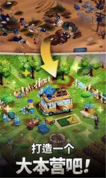 1、末日题材,玩家在废墟中合并物资,建立避难所,努力生存;