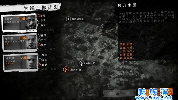 但实际上,由于胖子走得实在太慢了,用他战斗你会感觉到深深的蛋疼,而太慢的脚步决定了最好不用他直接去搜集物品(尤其是大场景,小场景比如初始给的安全点倒是无所谓),而是先用速度快的(基本上就是除了胖子以外的角色)把物资收集到一处,然后再用他往家搬。