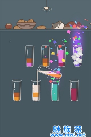 1、玩家需要将各种颜色的水按照颜色分类装在不同的瓶子里;