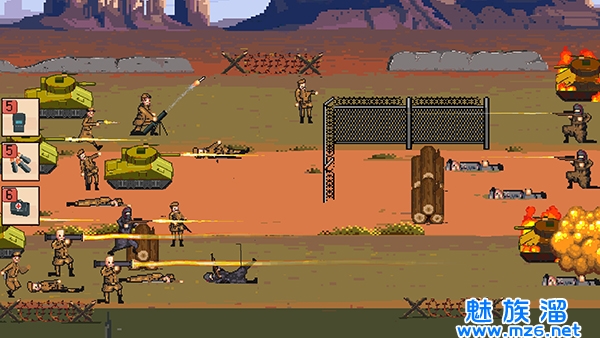 1、这款游戏以二战为背景的像素风横版策略战争游戏,将玩家带回到那个充满激烈战斗的时代。