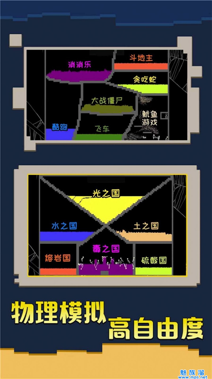 2、制作独特的火柴人游戏地图,加入多个沙盒元素。