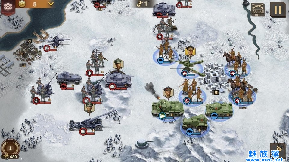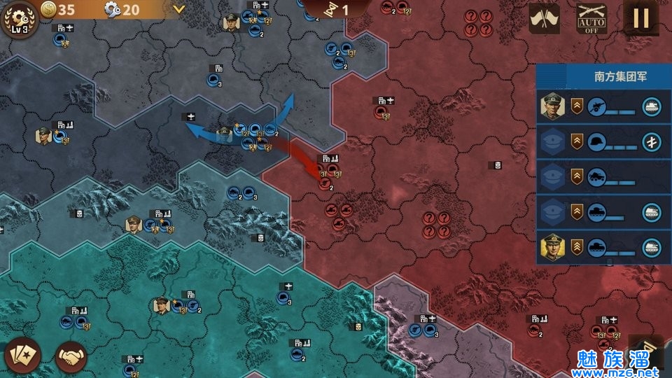 用最少的回合消灭敌对势力,征服最多的领土,赢取更高得分。