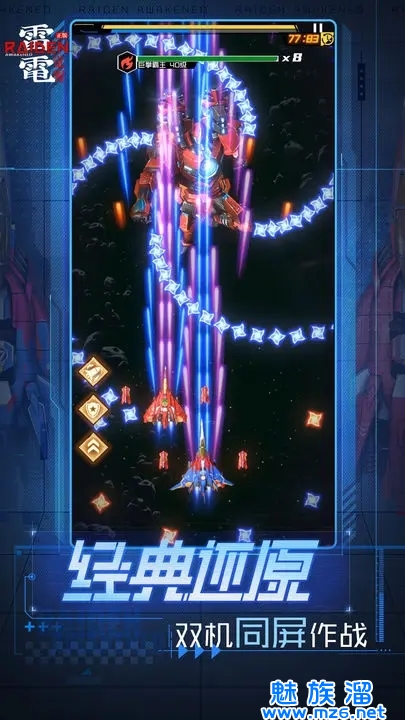 雷电携新手游续作《雷电:觉醒》归来,重启STG的快乐时光。继承雷电经典双人模式、一币一命以及红蓝机设计的同时,保留了诸多经典关卡,带玩家梦回1990!