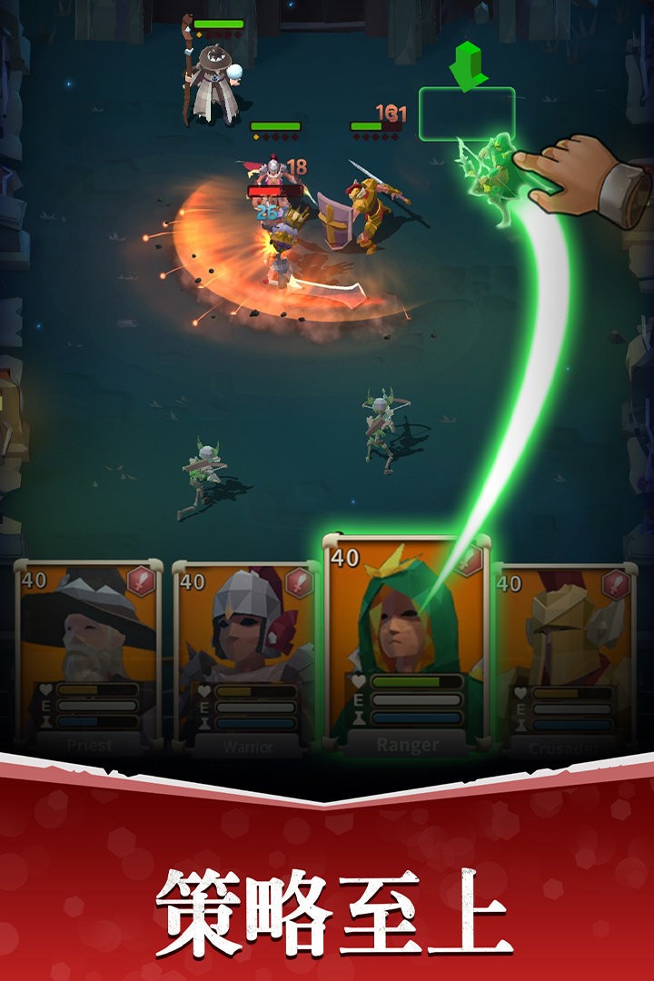 游戏中目前有8位不同职业的英雄供你调度,分别是:十字军、游侠、牧师、狂战士、猎人、萨满、术士和亡灵骑士。各个职业的英雄还可以解锁专属的终极技能、天赋树等,让英雄的功能更加丰富,创造更多的玩法策略。