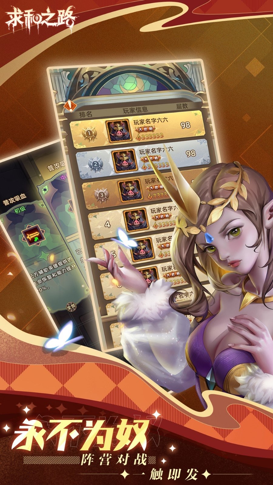 求和之路是一款黑暗风格的自走棋策略手游,玩家需要通过合成获得不同的英雄来获得高星英雄,并匹配不同的阵容来对抗敌人。