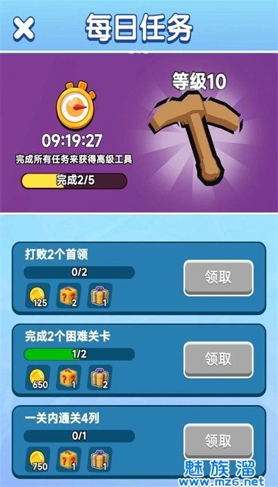 1、游戏中你需要使用锄头挖掘金矿、合并多个金矿,不断扩大自己的矿业帝国,获取更多的财富。