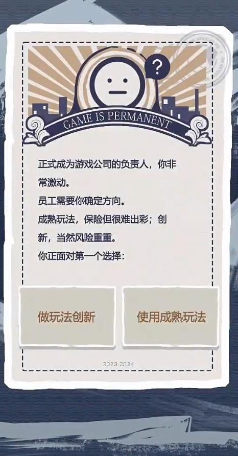 1、文字经营玩法,一系列的决策等着你,管理自己的游戏公司;