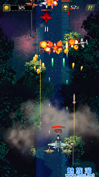 2、 精美逼真的飞机模型和战斗场景,带给玩家身临其境的飞行射击体验;