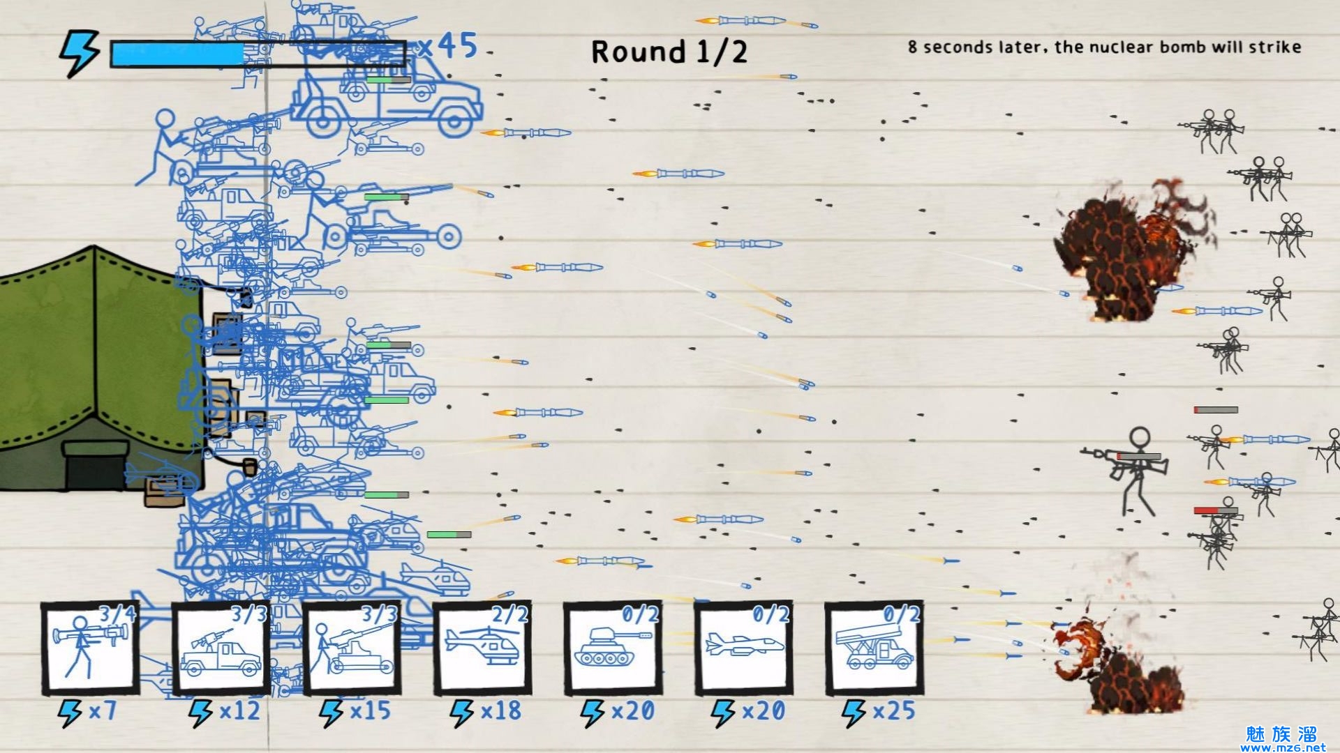 2、通过挑战关卡和解锁兵种,不断提升自己的游戏水平;