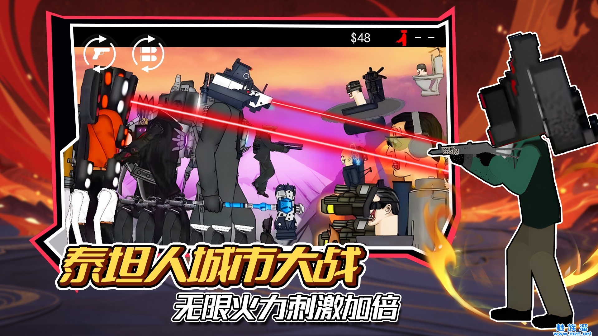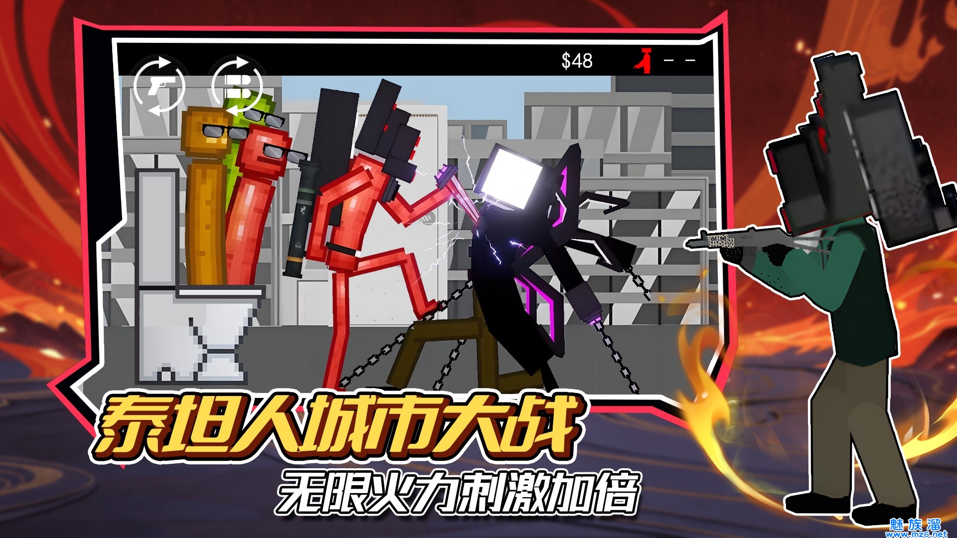 泰坦人城市大战一款非常好玩且魔性的趣味对战游戏,在这里面有着许多的关卡等你来挑战挑战,在这展开一场场精彩趣味对战,游戏操作简单易上手,并且还有多种角色任你选择,每一种角色都有属于自己专属技能,有喜欢玩这款泰坦人城市大战的朋友不要错过!