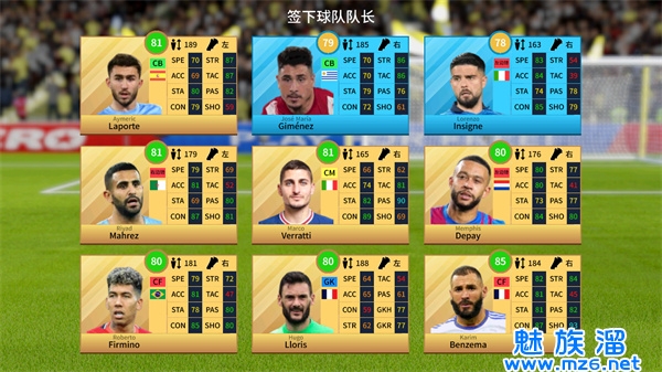1、丰富的球员数据库,选择并签约各路足球明星组建自己的梦幻球队。