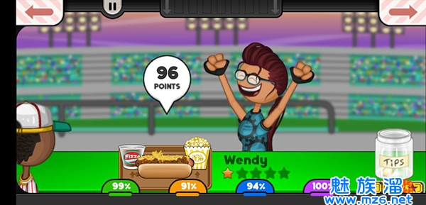 2、玩家努力卖出好吃的热狗,赚钱扩大店面,解锁饮料,爆米花等商品;