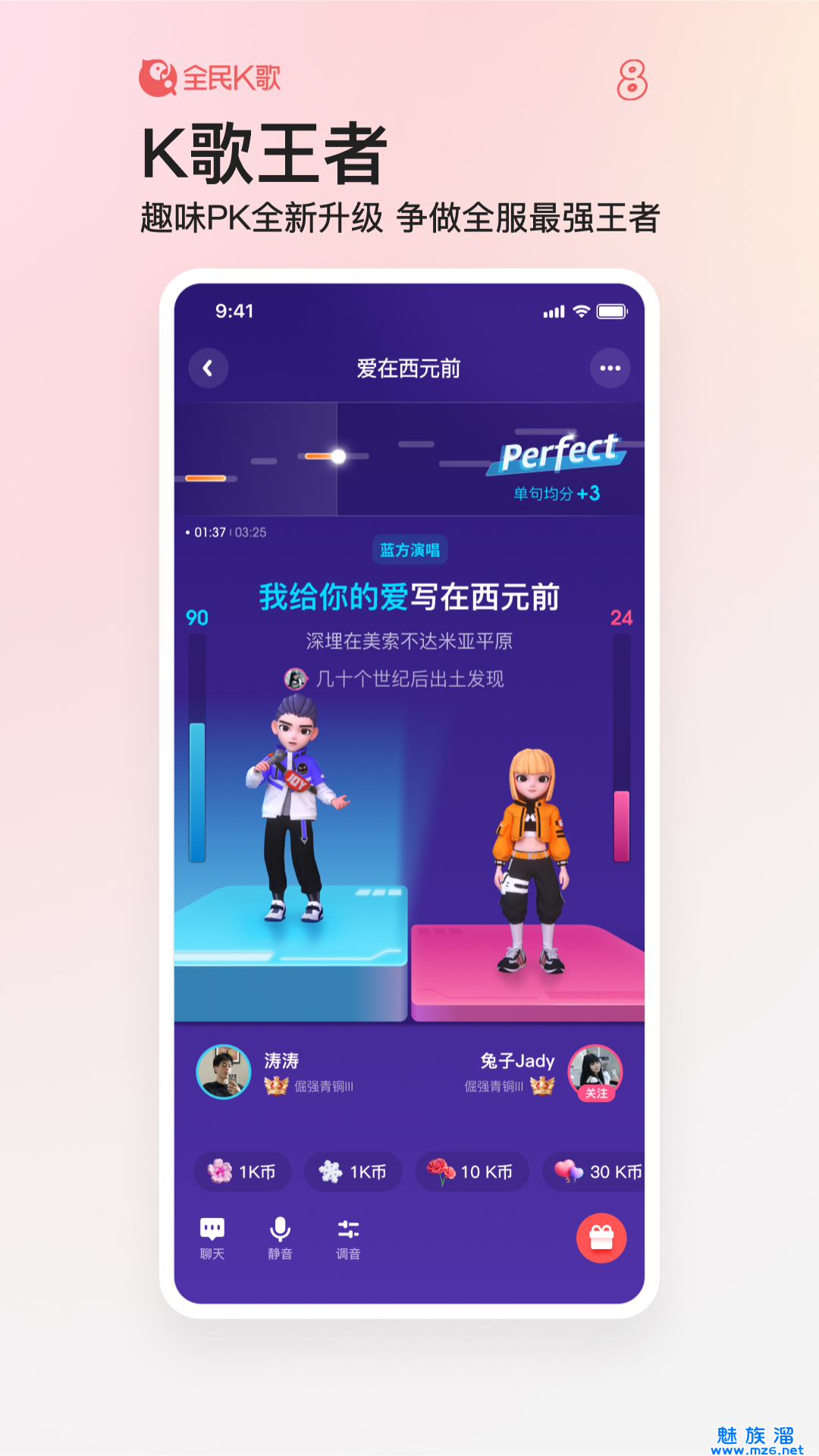 - 声动合唱:双人匹配实时合唱,互相亮灯无限唱聊