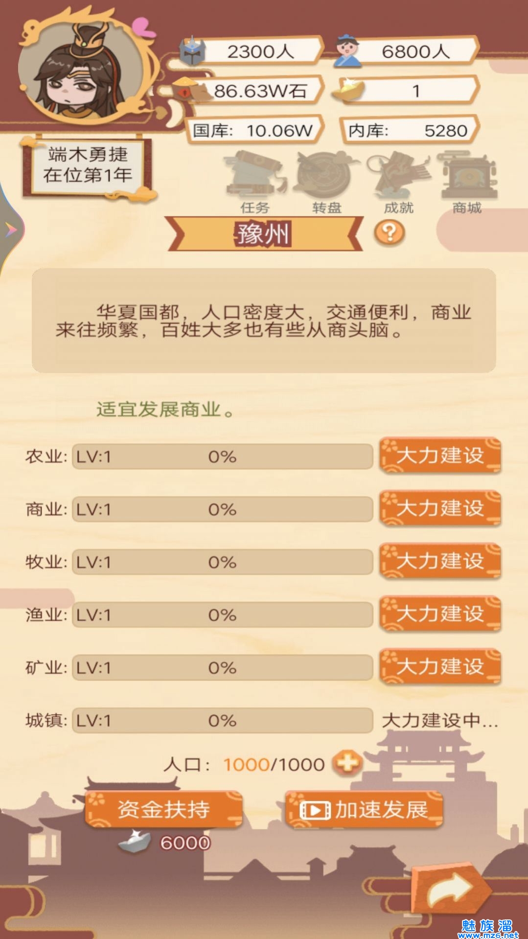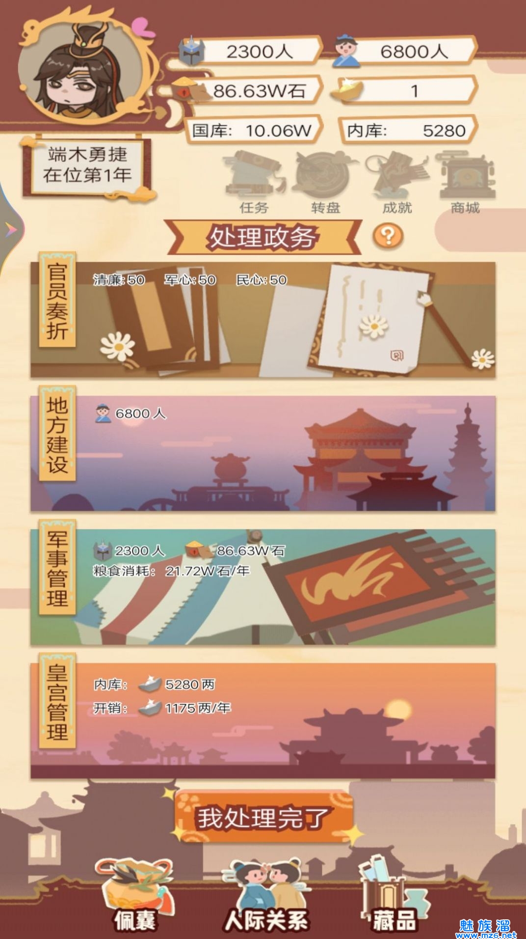 皇帝的快乐生活相当好玩的皇帝生活模拟类游戏,玩家将在该游戏当中扮演皇帝,你需要管理自己的国家,合理征税等等,获取大量的金钱,发展自己的国家,皇帝的快乐生活当中还有非常丰富的剧情故事等你体验,每一位玩家都能放心畅玩,喜欢玩皇帝的快乐生活的朋友不要错过!