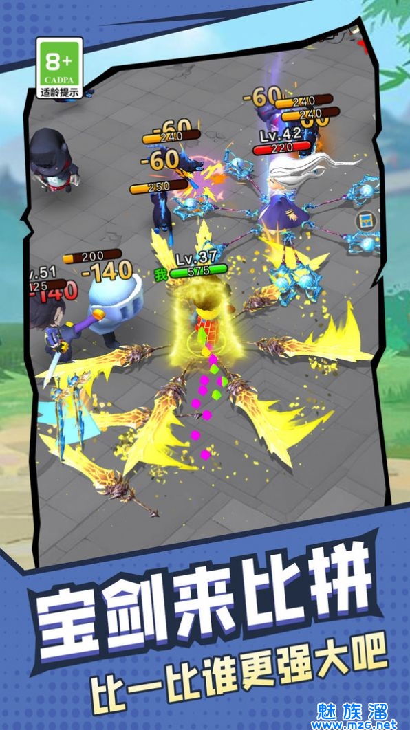 旋转大宝剑相当魔性的趣味对战游戏,全新割草玩法能够给你带来诸多乐趣,操控角色展开战斗,提升小人实力通过关卡,游戏操作简单易上手,各种趣味玩法任你选择,游戏过程十分的稳定流畅,全部十分稳定,喜欢玩旋转大宝剑的朋友不要错过,赶紧试试旋转大宝剑!