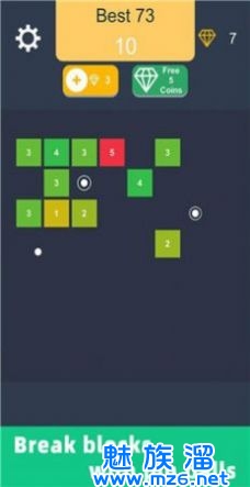 3.弹球碰碰碰游戏的玩法非常简单直观,适合各个年龄层的玩家;玩家需要控制弹球的运动轨迹,让弹球碰撞到同色的方块,消除它们;