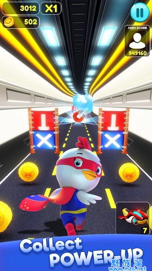 2.尽可能跑的更远,随着时间的推移,小鸡的跑酷速度会越来越快