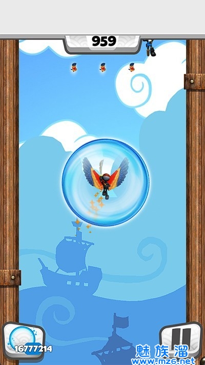 4.玩家操控忍者在两个墙壁之间来回跳跃,不断向上攀爬得分,高度越高得分越高。