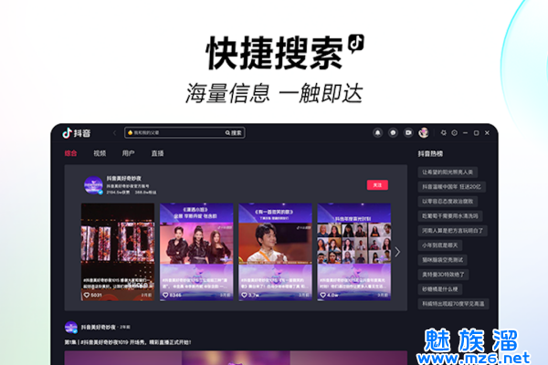 抖音电脑版是一款十分好用的短片视频平台app,用户在这款软件中可以体验非常有趣的短视频体验,而且使用电脑的大屏幕刷抖音更加的爽快,视频还可以自动的切换,使用鼠标的滚轮就可以让视频切换了,真的是非常的方便的哦。有需要这款软件的小伙伴们千万不要错过哦,快来下载试试吧,真的非常有趣。