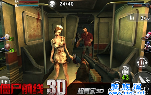 3、成群结队的僵尸还原真实的射击快感。一群丧尸会满足你的射击本能,而强大的变异丧尸则是对你操作的终极考验。
