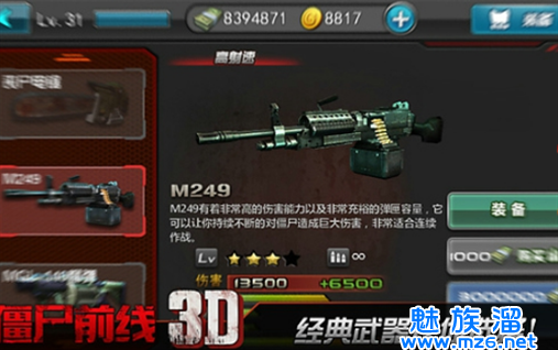 4、游戏已经设置为无限金币,大家可以在商城购买强大的武器增加我们的战斗力。