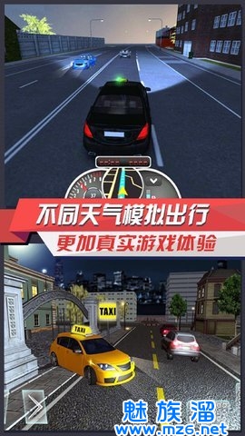 是由成都天羽艺游科技有限公司开发的一款超真实的出租车模拟游戏,在游戏中玩家将化身为一名出租车司机,可以像现实中那样去不停的通过接客人来赚钱,非常的有趣味。游戏里也是有着规则的,如果开车撞到行人是会被罚款扣钱的,所以要小心驾驶,避免碰撞,这样才能接取到更多的客人,赚取更多的收益,赚来的金钱可以用来解锁新的出租车,可以给玩家不一样的游戏体验。同时游戏里还有多种玩法模式选择、新征程更高难度的挑战、完全开放的的世界地图、数十种豪车选择以及不同的天气模拟,这些都能给玩家不一样的游戏体验。最后中文版拥有逼真的建模场景,精致的游戏画面,还有震撼的汽车发动机声效,丰富多样的挑战玩法,这些都可以让玩家体验到真实的出租车游戏体验。