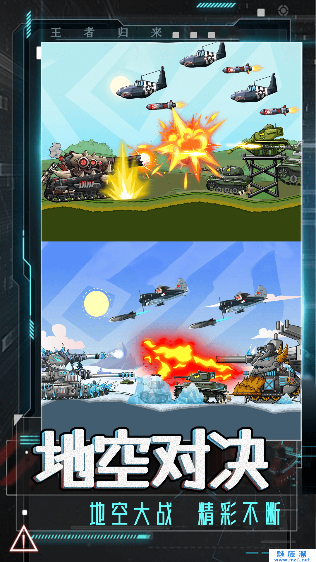 2、收集散布地图上的强化组件,即时升级坦克性能,应对更强对手。