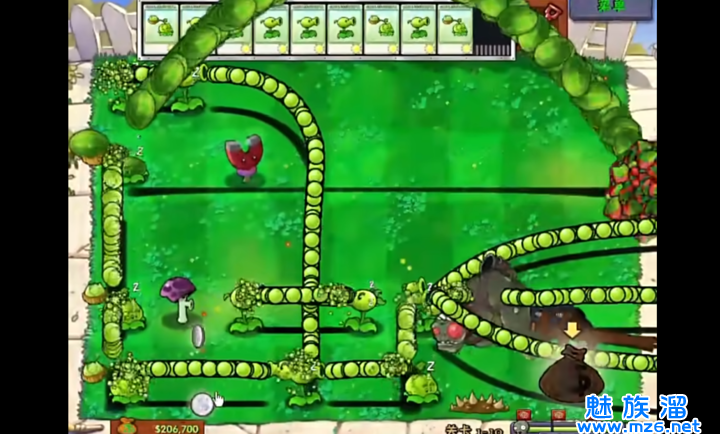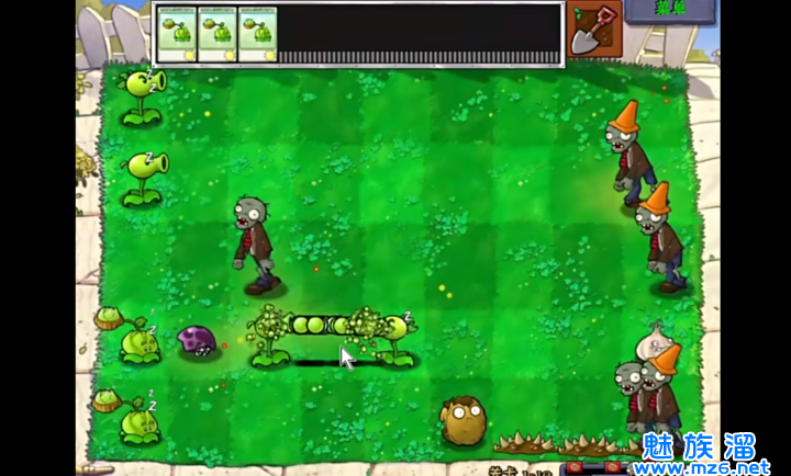 3、不减少僵尸密度,但是增加双发、裂荚、三线、杨桃的数量,同时增加樱桃来提高容错率。这个模式难度略大,但比较有趣。