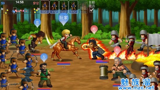 6、战争:在战场上赚钱招兵、攻城夺营,与百人大战。