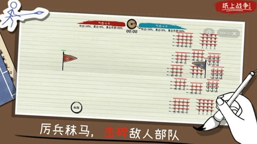 纸上火柴人的战争是一款在抖音上非常知名的策略战争游戏,游戏以火柴人为主题,玩家将会扮演一名火柴人战士,带领自己的火柴人部队与敌对部队进行战斗。游戏中拥有数种不同的兵种,玩家需要合理的配置阵容,才能让他们发挥出最大实力,非常考验玩家的策略能力。