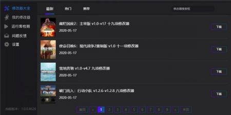 在初始界面能够看到目前最新的游戏修改器内容,还可以根据自己的需要进行搜索,点击下载后即可使用。