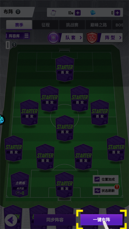 4、随后,我们实施一键布阵操作,进而上场参与比赛。
