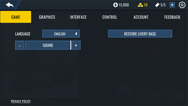 1. 双击启动俄罗斯汽车漂移游戏,然后点击游戏界面右上角的设置选项。