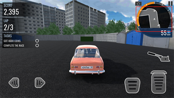 7、玩家要驾驶俄罗斯汽车进行跑圈,屏幕左侧用于控制方向,右侧是油门和刹车。