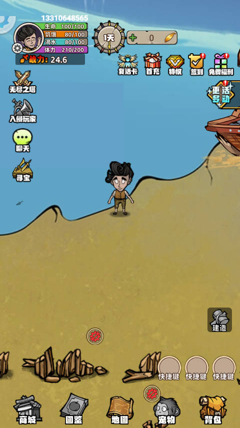 1. 借助采集岛屿上诸如木头、石头以及食物之类的资源,搭建起属于自己的庇护所。